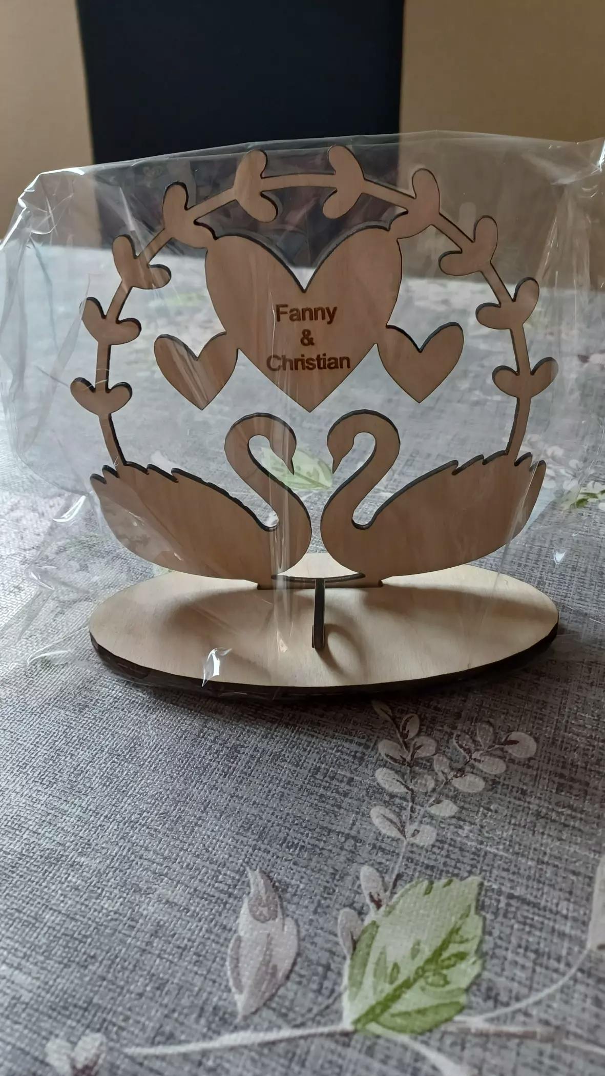 Geldgeschenk mit Gravur von Schwänen, Herz und Namen - Styon
